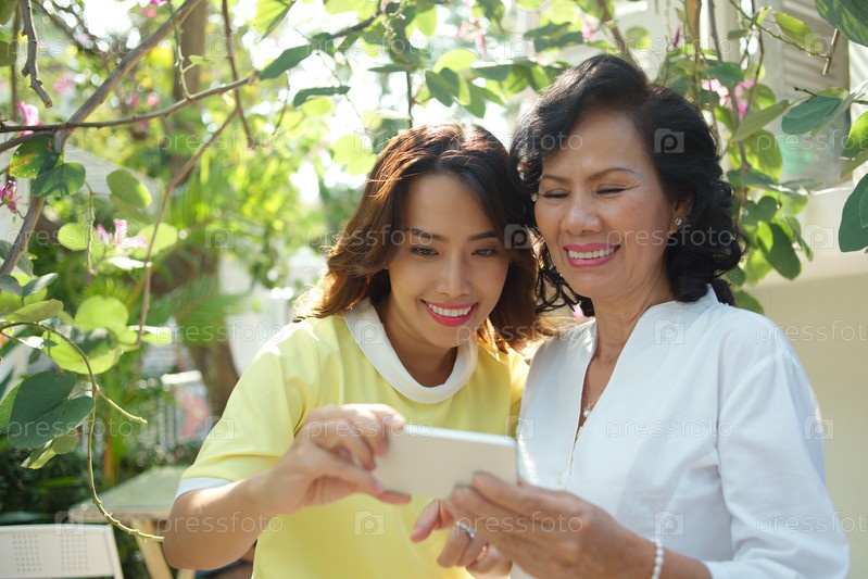 Женщина и девушка со смартфоном