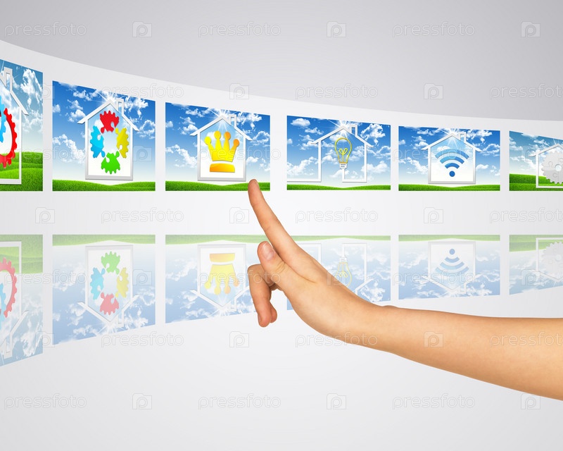 Иконка дома на фоне газона. Виртуальные экраны