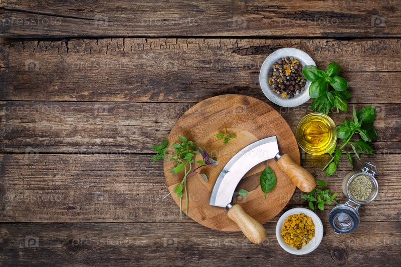 Зелень, специи и сечка на разделочной доске