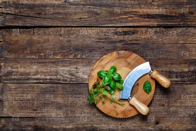 Базилик и сечка на разделочной доске