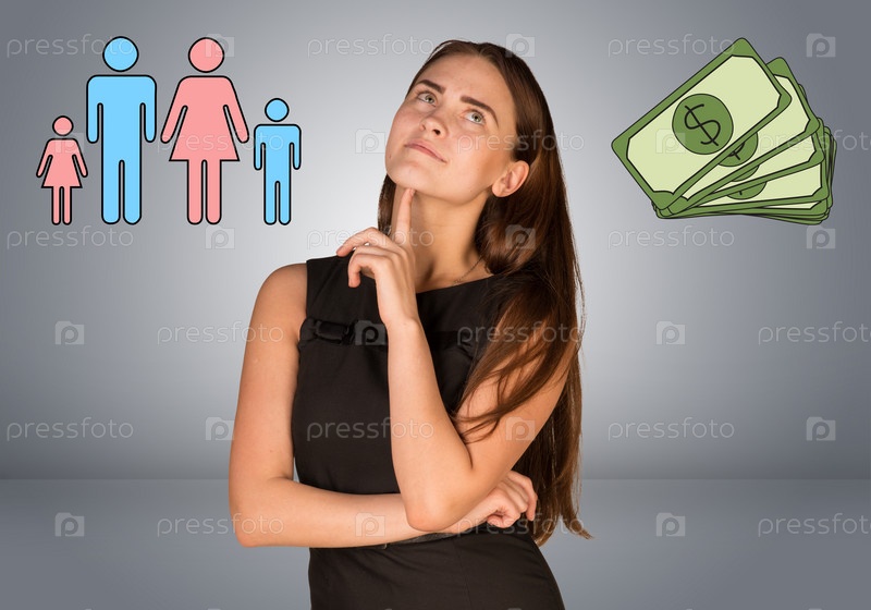 Деловая женщина думает о деньгах и семье