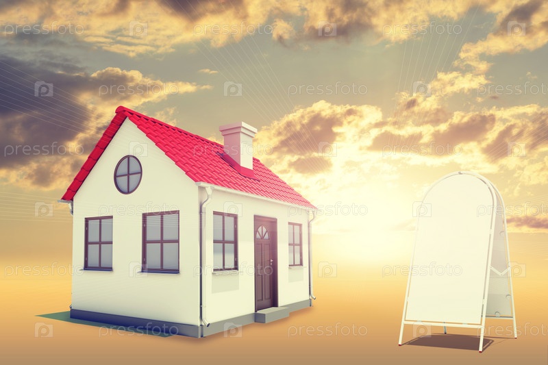 Белый дом и штендер на фоне заката