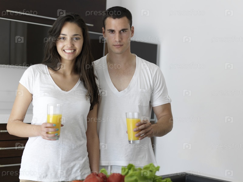 Счастливая молодая пара на кухне