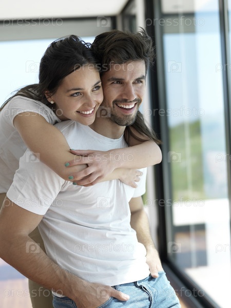 Счастливая молодая пара отдыхает дома