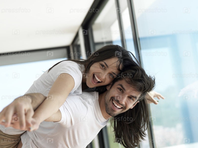 Счастливая молодая пара отдыхает дома