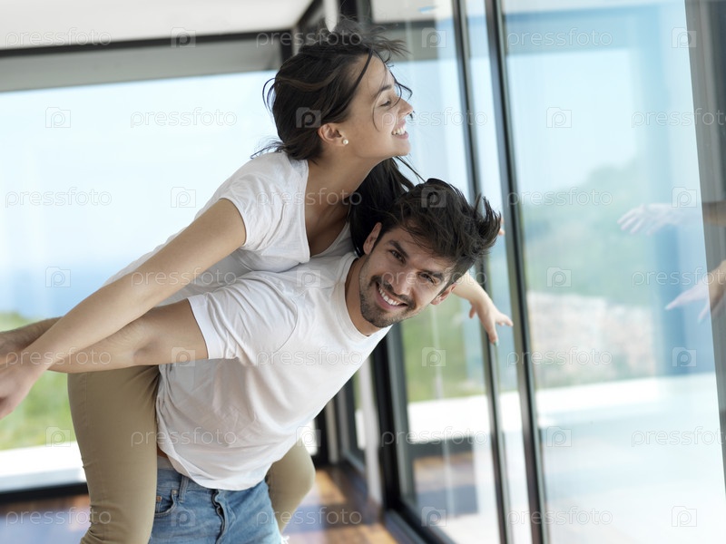 Счастливая молодая пара отдыхает дома