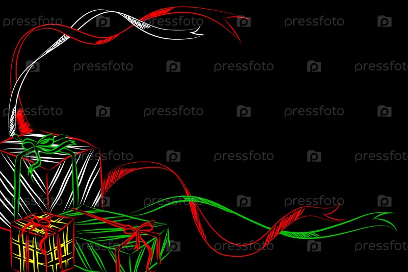 Коробки с подарками на черном фоне, иллюстрация
