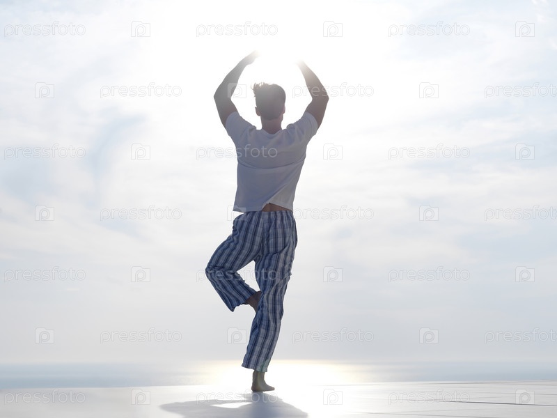 Молодой человек занимается йогой