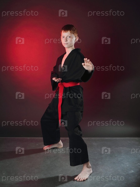 Каратист в атакующей позе