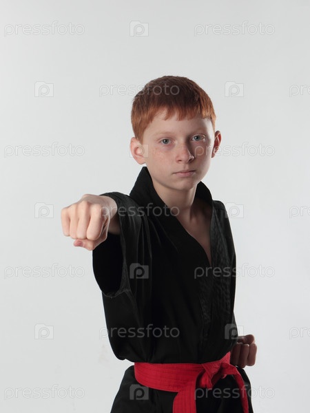 Каратист в атакующей позе