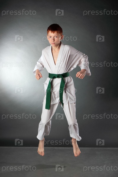 Каратист в атакующей позе