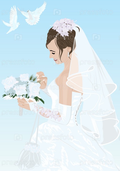 Иллюстрация с изображением невесты со свадебным букетом