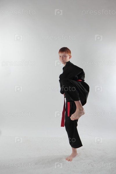 Каратист в атакующей позе