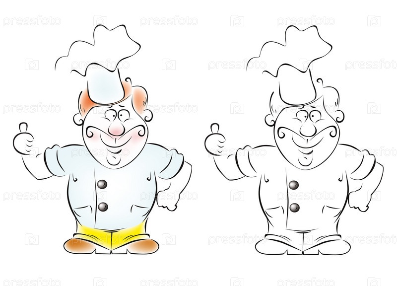 Черно-белое и цветное изображение повара, изолированное на белом фоне