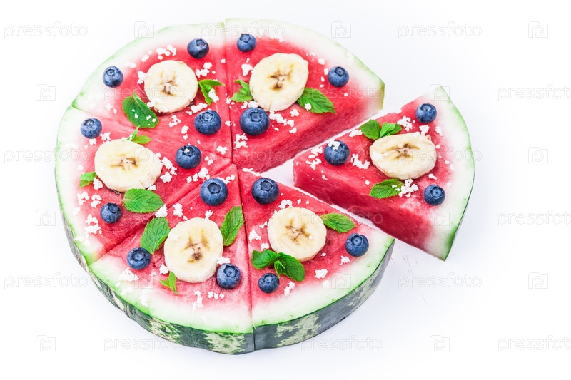 Арбузная пицца на белом фоне