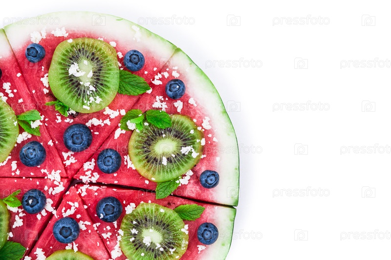 Арбузная пицца на белом фоне