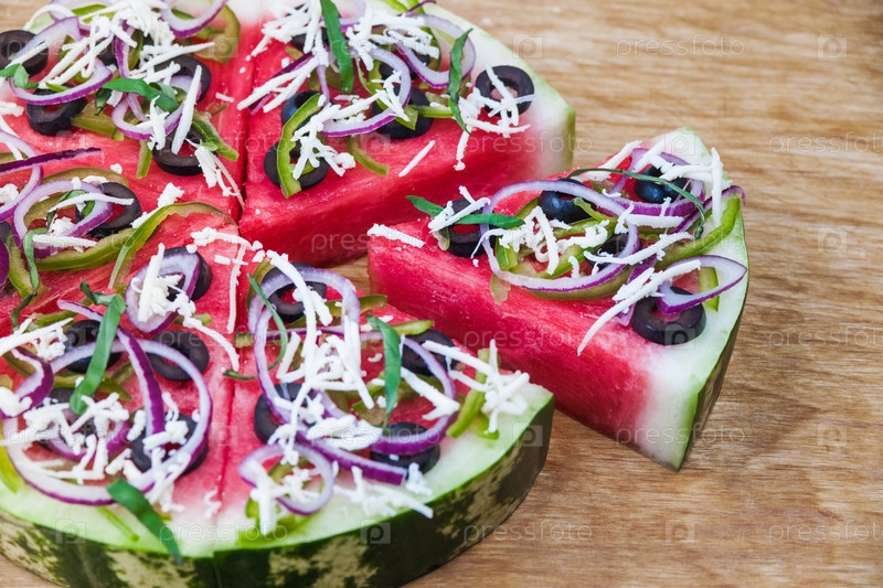 Арбузная пицца на деревянном фоне