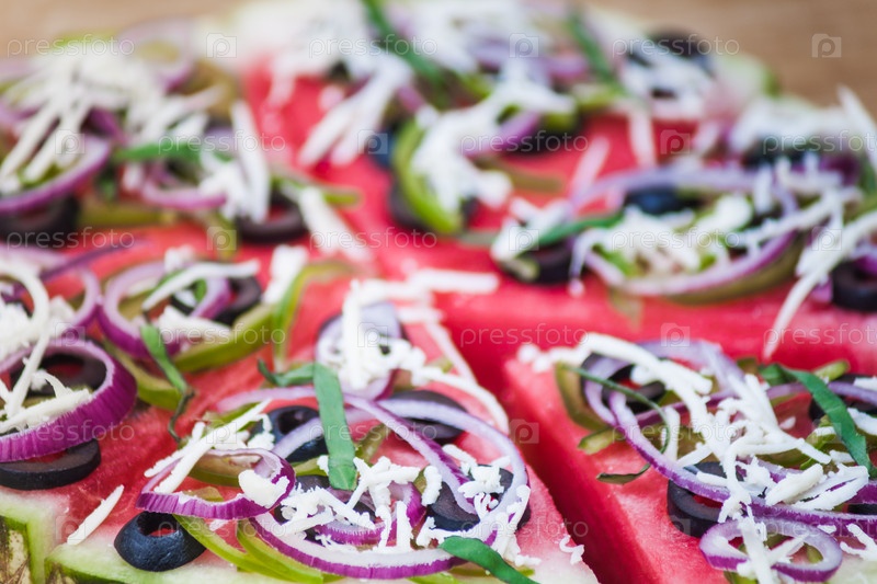 Арбузная пицца на деревянном фоне