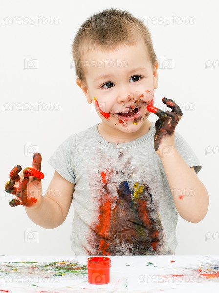 Мальчик играет с красками