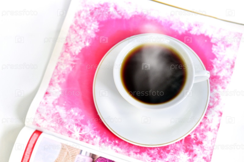 Чашка горячего кофе и журнал