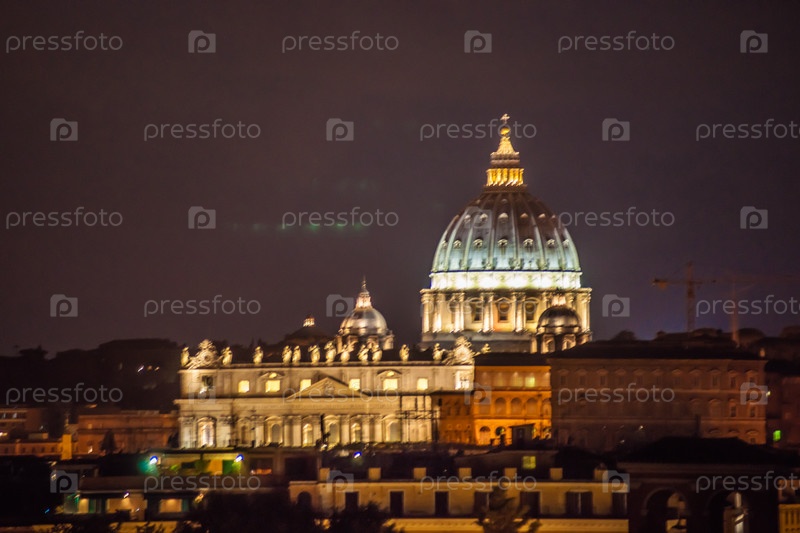 Ночной вид на собор Святого Петра в Риме, Италия