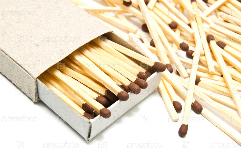 Спички и коробок на белом фоне