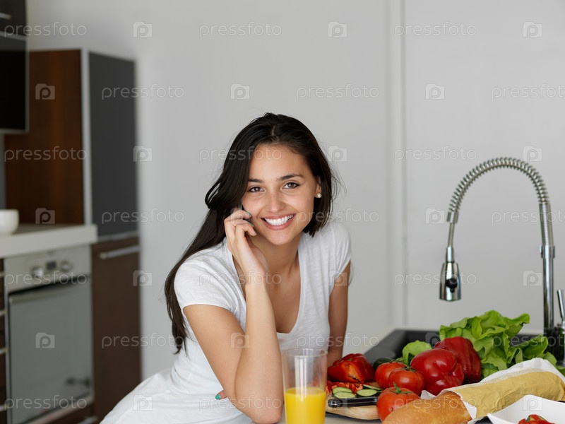 Молодая женщина готовит на кухне