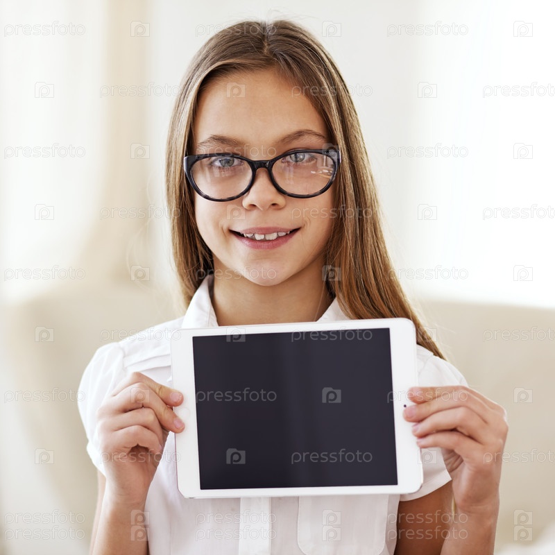 Школьница с планшетным ПК