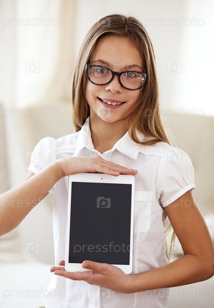 Школьница с планшетным ПК