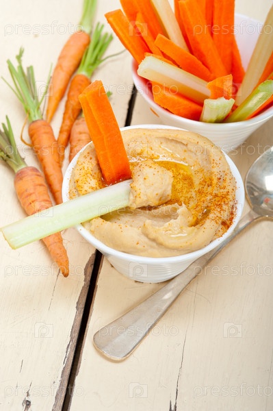 Хумус с сырой морковью и сельдереем