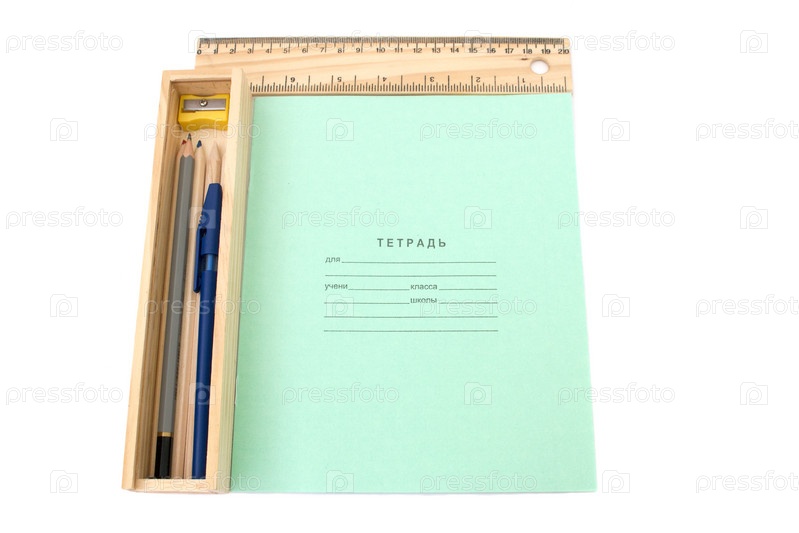 Тетрадь и карандаши, изолированные на белом