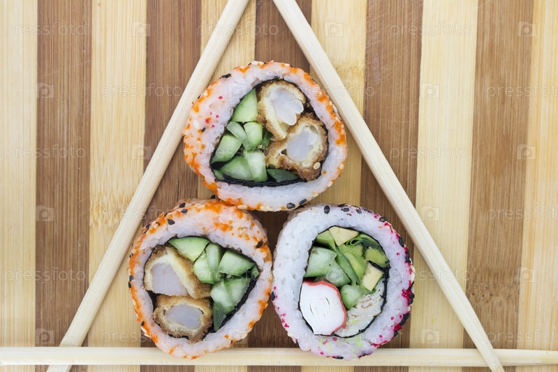 Роллы с огурцом и крабом