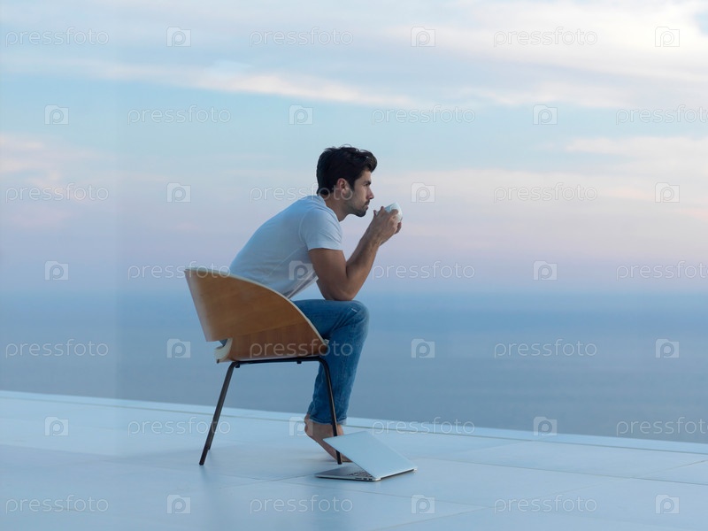 Расслабленный молодой человек на балконе дома