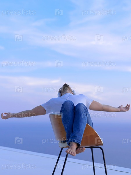 Расслабленный молодой человек на балконе дома