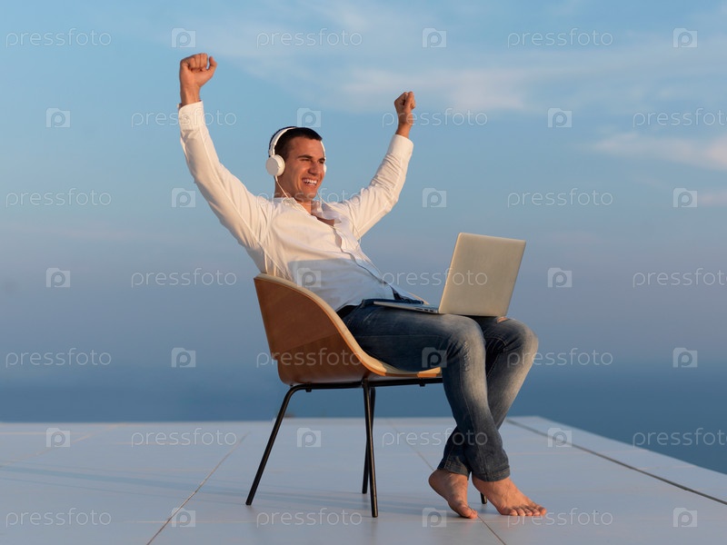 Расслабленный молодой человек на балконе дома