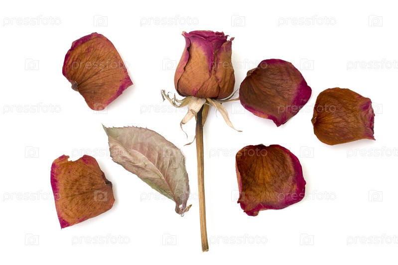 Сухие розы и лист, изолированные на белом фоне