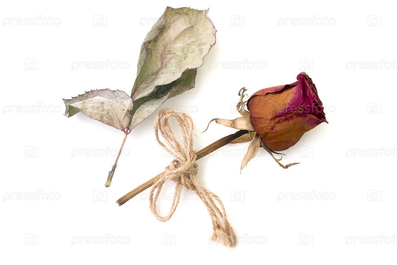Сухие роза и лист, изолированные на белом фоне