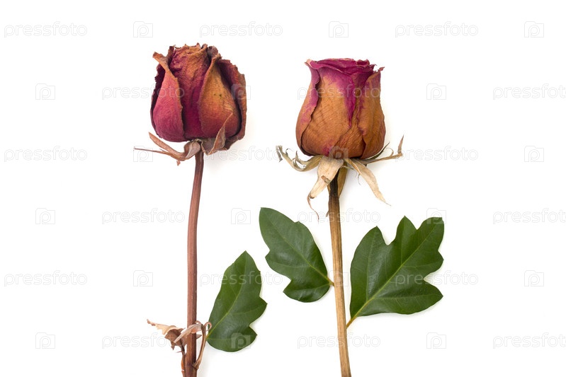 Сухие розы и листья, изолированные на белом фоне