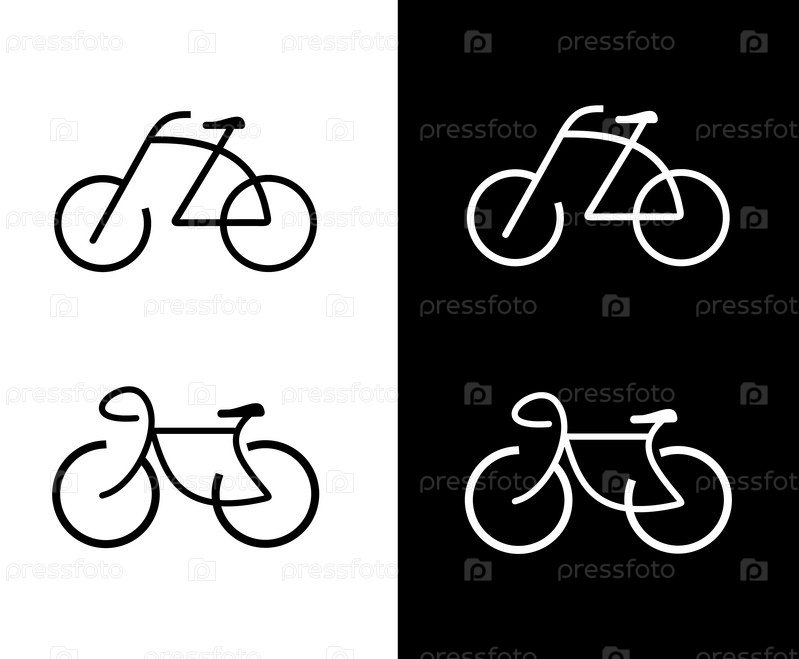 Иконки с велосипедами на белом и черном фоне