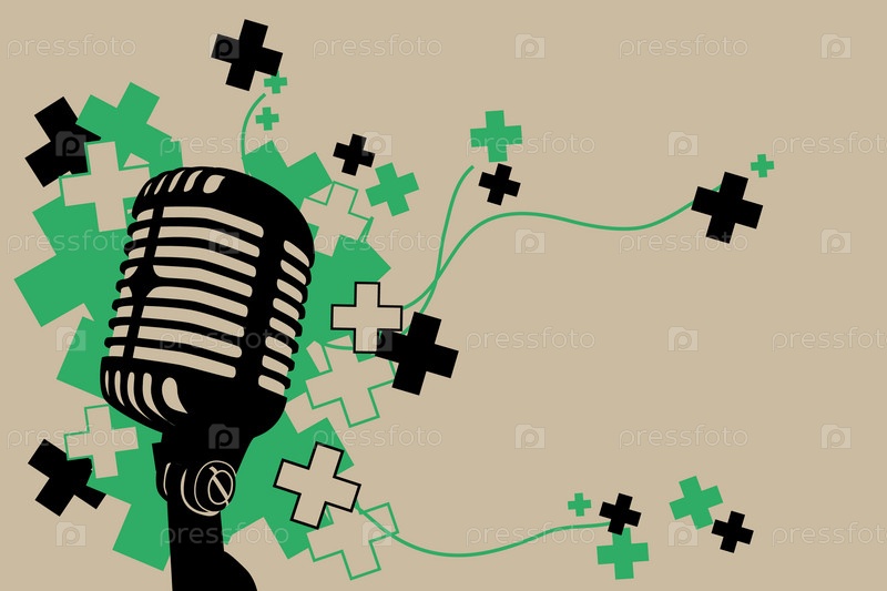 Абстрактный коричневый фон с микрофоном и геометрическими элементами