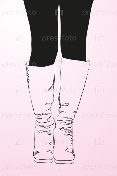 Векторное изображение женских ножек в сапогах на розовом фоне
