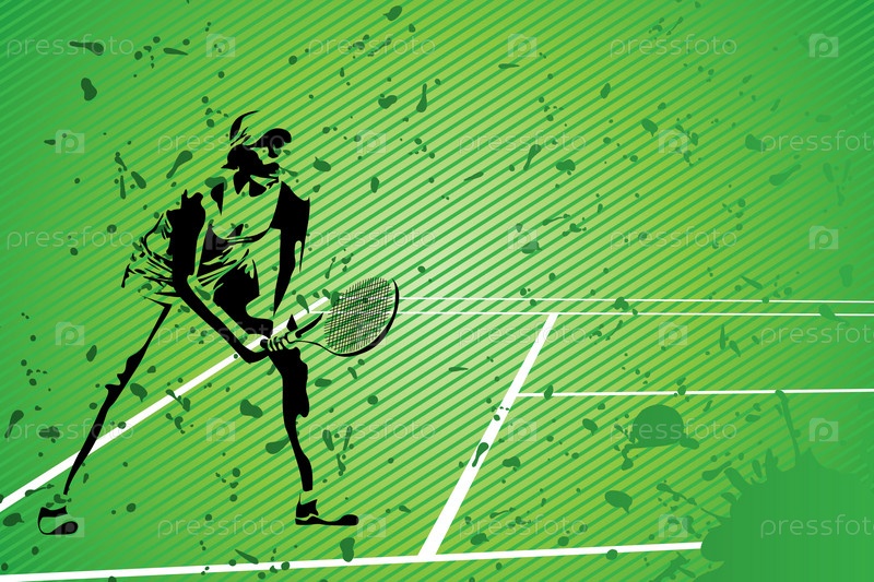 Векторная иллюстрация с теннисисткой на теннисном корте