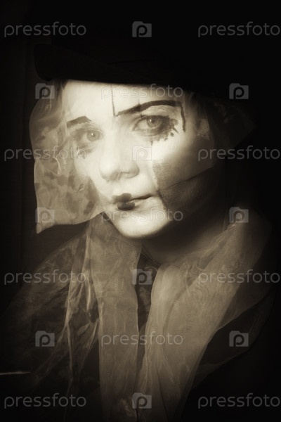 Портрет сюрпризной мимы в завесе ближайший монохром