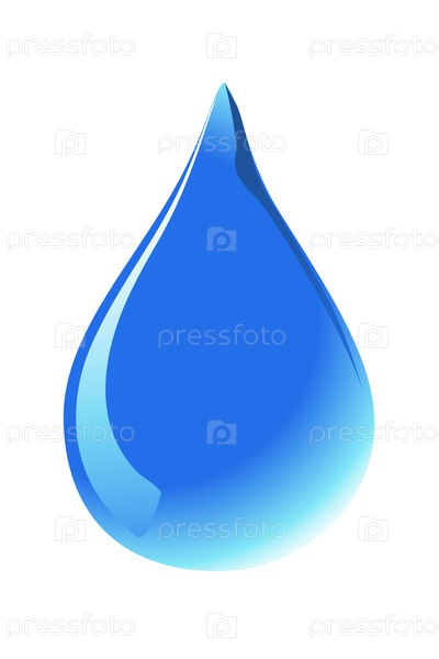 Голубая капля воды, иллюстрация на белом фоне