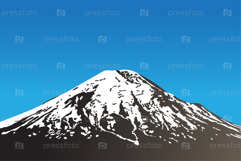 Спящий вулкан на фоне голубого неба, иллюстрация