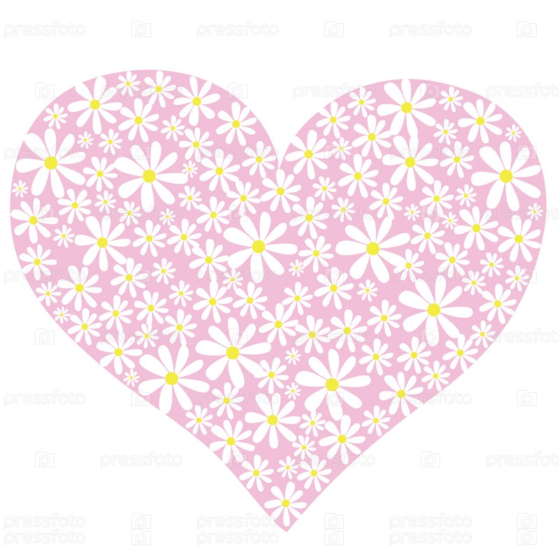 Сердце из цветов на белом фоне