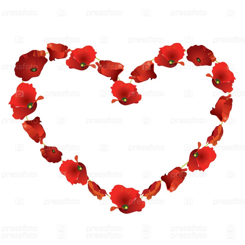 Сердце из красных маков на белом фоне