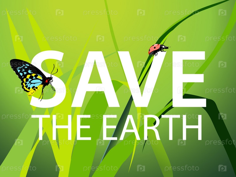 Божья коровка и бабочка на траве, иллюстрация