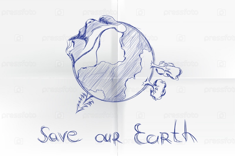 Планета Земля, рисунок на белом фоне