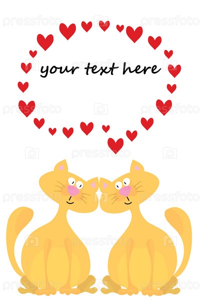 Две влюбленных кошки с рамкой для текста из сердечек